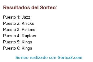Lista de participantes: Jazz(40), Kings(35), Knicks(45), Pistons(25), Raptors(191), Blazers(32).