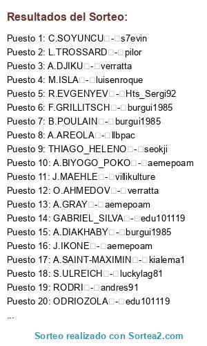 Resultados del sorteo: