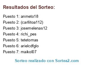 Lista de participantes: arielcdfglo, tetetomas, (carllitoa112), josemelenas12, maikol07, richi_pes, anmeto18.