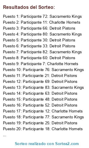 - Puesto 1: Participante 72: Sacramento Kings