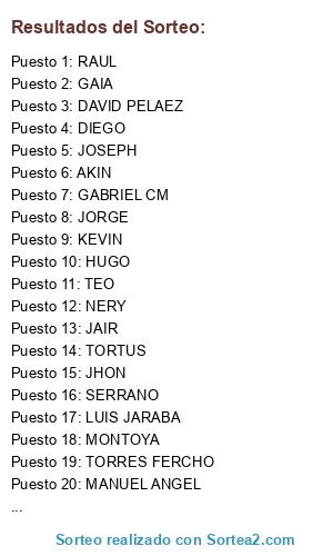 Resultados del sorteo: