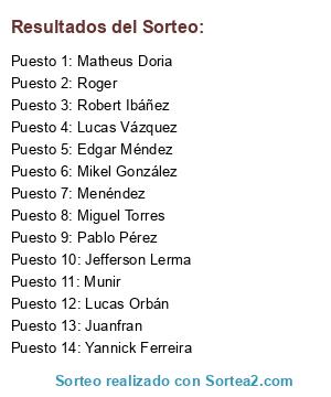 Lista de participantes: Jaume, Rat, Juanfran, Yannick Ferreira, Sergi Gómez, Medrán, Lucas Vázquez, Emi, Jefferson Lerma, Aritz Elustondo, Munir, Menéndez, Wanderson, Pablo Pérez, Trujillo, Enzo Pérez, Isma López, Matheus Doria, Miguel Torres, Roger, Montañés, Robert Ibáñez, Mikel González, Edgar Méndez, Lucas Orbán, Ibai Gómez, Varela, Nacho F..