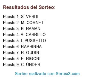 Lista de participantes: A. CARRILLO, S. VERDI, RAPHINHA, I. PUSSETTO, C. ÜNDER, B. RAMAN, R. OUDIN, E. RIGONI, M. CORNET.