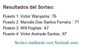 Lista de participantes: Romelu Lukaku 77, Victor Wanyama 76, Alberto Rodriguez 73, Emmanuel Mayuka 72, Marcelo Dos Santos Ferreira 71, Jose Elber Pimentel Da Silva 69, Nuno Miguel Pereira Reis 68, Jose Lionn 68, Ahmed Hassan Mahgoub 67, Victor Andrade Santos 67, Will Hughes 67, Florentin Pogba 66.