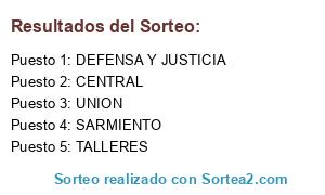 Lista de participantes: SARMIENTO, DEFENSA Y JUSTICIA, UNION, TALLERES, CENTRAL.