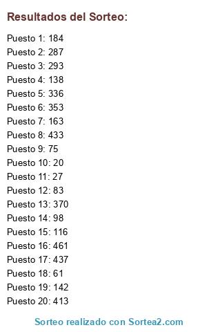 Resultados del sorteo: