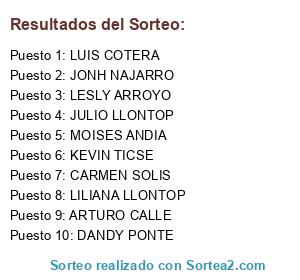 Lista de participantes: MOISES ANDIA, DANDY PONTE, ARTURO CALLE, KEVIN TICSE, JONH NAJARRO, CARMEN SOLIS, LILIANA LLONTOP, JULIO LLONTOP, LESLY ARROYO, LUIS COTERA.