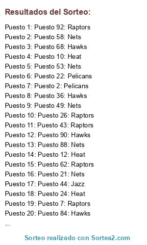 - Puesto 20: Participante 17: Philadelphia 76ers