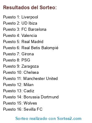 Lista de participantes: Zaragoza, Chelsea, Liverpool, Cadiz, Valencia, Milan, Real Betis Balompié, PSG, Wolves, Borussia Dortmund, Manchester United, UD Ibiza, Girona, Real Madrid, FC Barcelona, Sevilla FC.