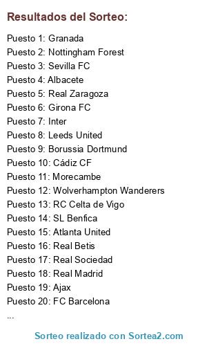 Lista de participantes: Inter, AC Milan, FC Barcelona, Ajax, Athletic Club de Bilbao, Borussia Dortmund, Valencia CF, Arsenal, Nottingham Forest, Wolverhampton Wanderers, Real Madrid, RC Celta de Vigo, Manchester City, Atlanta United, RCD Mallorca, Liverpool, FC Andorra, Manchester United, Leeds United, Girona FC, Granada, Real Betis, FC Bayern Munich, Albacete, Real Zaragoza, SL Benfica, Cádiz CF, Real Sociedad, Morecambe, Sevilla FC.