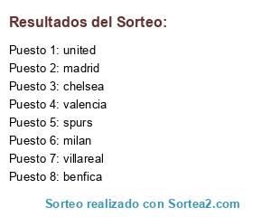 Lista de participantes: united, valencia, milan, benfica, villareal, chelsea, spurs, madrid.