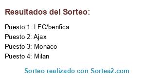 Lista de participantes: Ajax, Milan, Monaco, LFC/benfica.