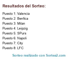 Lista de participantes: City, Milan, SPurs, Benfica, Valencia, Napoli, Leipzig, LFC.