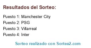 Lista de participantes: Villarreal, PSG, Manchester City, Inter.