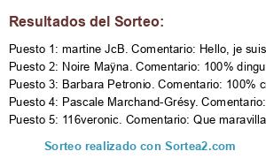- Ganador 1: martine JcB. Comentario: Hello, je suis 100% naturel, delicat, gafter, fun, experience et surtout in love !😉💕