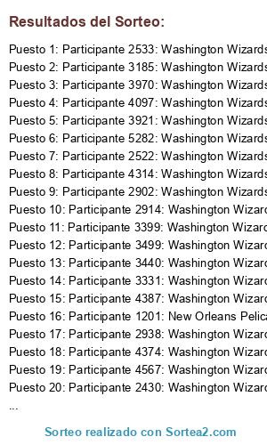 - Puesto 16: Participante 1201: New Orleans Pelicans