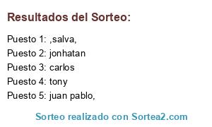 Lista de participantes: carlos, ,salva,, juan pablo,, jonhatan, tony.