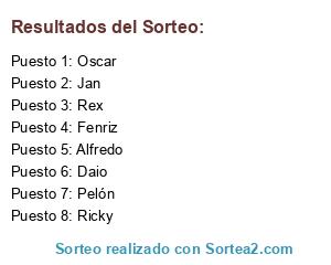 Lista de participantes: Alfredo, Daio, Fenriz, Jan, Oscar, Pelón, Rex, Ricky.