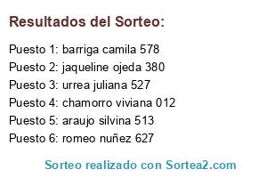 Lista de participantes: avendaño 938, luceo julio576, parra agostina 813, lere misael 155, aguirre marcelo 147, julian sergio 779, florencia tejada 354, fernandez carlos 814, almilcar manrrique 531, nuñez agustin 778, araujo cristian 798, vanina tejada 354, moraga francisco 130, vargas leandro 658, ovegero nicolas 996, gimenez belen 939, antieco gabriel 249, barrera daniel 527, mallaman miriam 857, saavedra alicia 043, rosa gonzalez 151, analia solussoglia 333, vanina piscia 893, fernando ariel diaz 510, mario quilaleo 354, bocha sanchez 561, cezar jaramillo 550, zarate caterine 002, chamorro daria 434, godoy ana 922, rodriguez leo 736, diaz julia 444, diaz elizabeth 444, viviana quintana 290, cyufil fernando 383, araujo silvina 513, monzon malena 697, monzon lucia 697, jaquelina larsen 574, almonacid sol 417, almonacid claudio 304, hugues vanesa 760, sofia duran 665, sanchez karen 926, viedela alicia 821, diaz ruben 883, videla marisa 069, chancalay german 142, torres matias 751, gabriela de torres 873, peña hector 553, navarro cintia 984, gutierrez ana 947, cuchasca belen 588, arce coli 410, arce nazareno 410, chabeldi nilda 221, robert tamara 445, robert belen 445, torres victor 123, torres alfredo 456, roque roman 458, roldan ivan 867, magri daniel 130, calfual alejandro 319, sizek cintia 906, altamirano susana 711, cattaño jessica 123, cattaño iris 123, brito cristian 130, grifit melanie 158, ceballos diego 246, gonzalez maira 210, arbe ayelen 353, gutierrez florencia 370, hermandez pablo 202, medina luciano 475, san martin nicolas 013, bustos leonel 185, ortiz maira 726, ortiz edith 726, reinoso marcelo 908, acosta matias 412, sanchez pablo 047, parod vanesa 295, jaqueline ojeda 380, pailacura jesica 279, mendez mario 609, lopez marco 771, gajardo nilda 479, dopaso isaias 697, segura david 758, nuñez karina 035, urrea juana 474, barriga camila 578, chamorro viviana 012, mansilla silvia 748, urrea juliana 527, gallego erika 896, irribarra luz 620, pereyra soraya 284, saavedra esteban 284, silbering alejandro 695, saavedra julieta 266, romeo nuñez 627, saavedra lorenza 266, duran patricia 665, suarez yesica 163, suarez agustina 163, urquiza juan 337.