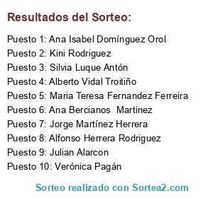 Lista de participantes: María Pérez S, Jaime Torralba, Luis Lectriciti, Ismael Baños Sánchez, Alexandre Ors Pascual, Candido Lopez Caparros, Carmen Rodríguez, Maria Jose Rosello, Alberto Santander Martínez, Jose A Ruiz, Ana Bercianos Martinez, Rober Fruits, Maria DelCarmen Rodríguez Gracia, Alberto Antón Escudero, Pilar Presas Pérez, Noel Fernández, Joaquin Roldan, Fernando Roldán Rodríguez, Carlos Fernández, Julia López López, Susana Belzuz Pascual, John Middleton, José Antonio Pinto, Isabel Teis Tarinas, Teresa Gonzalez Fernandez, Rebecca Gabriella Middleton, Juan Rubio, Sandra Rubio, Paz Malillos Gil, Yolanda Gutierrez Gomez, Mario Cabrero Volarich, Alexandra Tobajas, Maria J Fernandez, Astrid alonso fernandez, Luisa Maria Chaparro Romero, Teresa Salazar, Sergio Arnaiz Delgado, Margarita Sañudo, Cesar Vallejo Herrero, Simón Vallejo Sañudo, Sonia Florido Jimenez, Joan Carles Mateu Carrera, jorge naya gonzalez, Antonio Gayubo Nebreda, Vanessa Cordero Duque, Maria Angeles Diaz Peinado, Albert Schneider, Bruno Pinto Barbedo, Joaquin Sepulveda, David Seco, Maria Jesus Ramos, Encarni Estévez, Mireia Pamies, Jose Manuel Hidalgo Garcia, Juan López, Cristina Navarro Caballero, Encarni Löpez, Alfonso Herrera Rodriguez, Jose Garcia Garcia, Juan Carballal, Alberto Morillas, Raquel Martinez Valdes, Carmen Luis, Pablo Rubio Prestel, Laura Gómez Rabanal, Pilar Gil Costa, Maria Teresa Fernandez Ferreira, Juan Carlos Rubio Prestel, Francisco J Palma Garcia, Miguel González Sánchez, Mario Gimenez Bernal, Kini Rodriguez, Felicisima Merchán Pérez, Laura Armero, Luisa Moreno de Matias, Ana Moreno de Matias, Pedro J. Santos, Javi Estrada, Maria Baena Serrato, Adrian Martinez Barbudo, Julia Losada Barreros, Patricia Rajado, Eva Palomares, Lourdes Hernández, NOEMI MARTIN ORTEGA, Joaquín Romero, Jesús Pérez Cámara, Julian Alarcon, Alberto Cantarero Lopez, Juan Collado, Fermin Hernandez Sendin, Covadonga Reverte, Belén Alonso sainz, Inmaculada Quiñonero, manuel gomez pavon, M Carmen Santiago Torralbo, Verónica González, Mari Alonso Fernandez, Cesar Leyva Navarro, Katerina Knyazhechenko, Esther Vázquez Matías, Carmen A Fernandez, Sergio Garcia, Juan Francisco Marin Morales, Dolores Rivas, Jorge Martínez Herrera, Francisco Casado, Lauro Roman, Raul Gomez, María Hernández, Ana Isabel Domínguez Orol, Carmen García Moreno, Nicolas Galvez Martin, Yolanda Cantarero López, Carmen Peral Toscano, Mar Cerezuela, Nieves Arranz, Jose Maria Perez barragan, Carmen Gomez, Eduardo Benito Gonzalez, Carolina Peña, LoRe Sim, Montserrat Losada Barreros, Vanessa Guerrero Peregrina, Loren Cano Soler, Francisco Javier Cazalla, Sandra Ferré, María Teresa Romero Sánchez, Jose Javier Nieto Onsurbe, Dolores Soler Rodriguez, Natalia Domínguez Muñoz, Mercedes Soler, Gema Ferreiro Losa, Francisco Javier Martinez Romero, Pilar Castillo Porras, Castellanos Caballero Orochimaru, Lucia Perez Perez, Leonor Losa Molina, Monica Lastra Toca, Mar Bellido Camuñas, Raquel Cano Soler, Alberto Vidal Troitiño, Nomiya Maki, Jan A. Soler, Jose Antonio Hermida Castro, Soledad Rodriguez Lopez, Aurora Anton, Ana Herrera Plaza, Rosa Ferrer Bria, Silvia Luque Antón, Begoña Diaz Ramirez, Jesús H. Martínez, Verónica Pagán, Roberto Freire, Paky Molina Mesa, Lorena Virtus, Carlos Espinosa Seco, Sole GP, Antonia Corbacho, Francisco González Fernández, Macarena Soria, COSTICA GHEORGHE MITOSERIU, Ana Vazquez, Eva Mariño Sánchez.