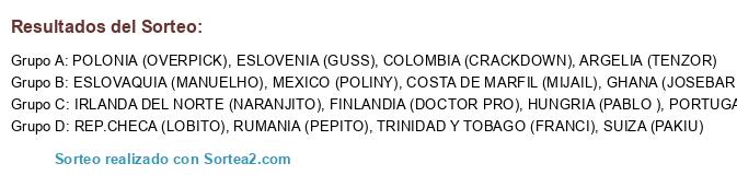 Lista de participantes: TRINIDAD Y TOBAGO (FRANCI), PORTUGAL (CLEMENZA), COSTA DE MARFIL (MIJAIL), ESLOVAQUIA (MANUELHO), ESLOVENIA (GUSS), FINLANDIA (DOCTOR PRO), HUNGRIA (PABLO ), IRLANDA DEL NORTE (NARANJITO), POLONIA (OVERPICK), REP.CHECA (LOBITO), RUMANIA (PEPITO), SUIZA (PAKIU), ARGELIA (TENZOR), GHANA (JOSEBARI), COLOMBIA (CRACKDOWN), MEXICO (POLINY).