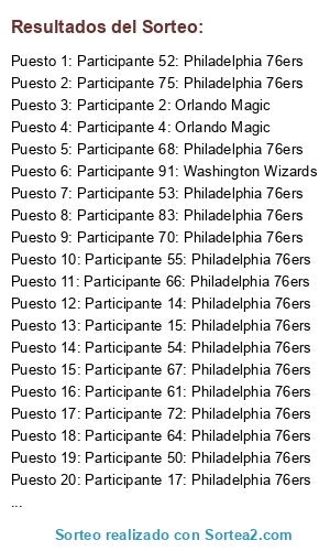 - Puesto 46: Participante 17: Philadelphia 76ers