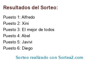 Lista de participantes: Javivi, Xini, Abel, Alfredo, Diego, El mejor de todos.