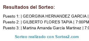 - Puesto 1: | GEORGINA HERNANDEZ GARCIA | 7:00PM |
