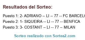 Lista de participantes: 1- SIQUEIRA -- LI -- 77 -- BENFICA, 2- ADRIANO -- LI -- 77 -- FC BARCELONA, 3- COSTANT -- LI -- 77 -- MILAN.