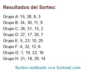 Lista de participantes: 1, 2, 3, 4, 5, 6, 7, 8, 9, 10, 11, 12, 13, 14, 15, 16, 17, 18, 19, 20, 21, 22, 23, 24, 25, 26, 27, 28, 29, 30, 31, 32.