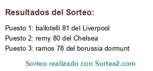 Lista de participantes: ballotelli 81 del Liverpool, remy 80 del Chelsea, ramos 78 del borussia dormunt.