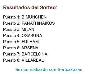 Lista de participantes: VILLAREAL, B.MUNCHEN, FULHAM, BARCELONA, OSASUNA, ARSENAL, PANATHINAIKOS, MILAN.
