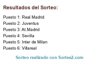 Lista de participantes: Sevilla, Villareal, At.Madrid, Inter de Milan, Juventus, Real Madrid.