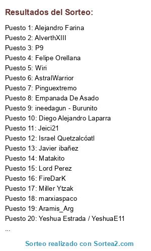 Yarpon, Israel Quetzalcóatl, AlverthXIII, MARCOMAXIMO, FireDarK, AstralWarrior, LMaquiel, Lord Perez, Loki, Raul_varas, Felipe Orellana, mario ovalle, Mariano Aleman, [nazgui] cesar, JALCO13, Genghis_87, Loveak74, Sergio yael gonzalez, SaGa_SnOw, Cristian Ramirez (bAlicer), Yeshua Estrada / YeshuaE11, FavaLucas,
