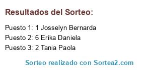Lista de participantes: 1 Erika Daniela, 2 Erika Daniela, 3 Erika Daniela, 4 Erika Daniela, 5 Erika Daniela, 6 Erika Daniela, 1 Tania Paola, 2 Tania Paola, 3 Tania Paola, 1 Jessica Guaman, 1 Cata Mayancela, 1 Karina Avila, 1 Michelle Bautista, 1 Megcy Yesenia, 1 Josselyn Bernarda.