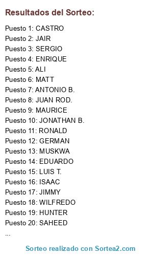 Resultados del sorteo: