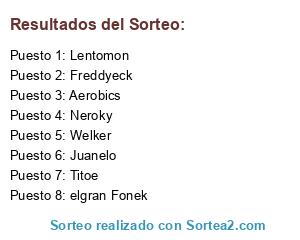 Lista de participantes: Lentomon, Aerobics, Neroky, Titoe, Welker, Freddyeck, elgran Fonek, Juanelo.