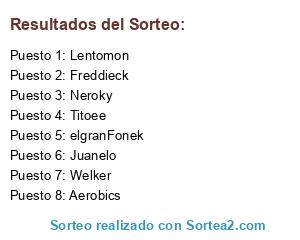 Lista de participantes: Lentomon, Neroky, Welker, Juanelo, elgranFonek, Freddieck, Aerobics, Titoee.
