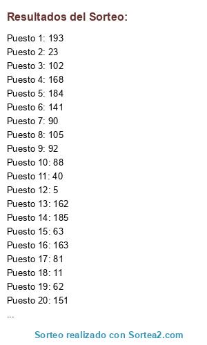 Resultados del sorteo: