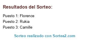 Lista de participantes: Duh, Camille, Patty, Tsubasa, Rukia, Hekateris, Florence, Ayame, Pupi, Hime chan, Panchito, Kaoru.