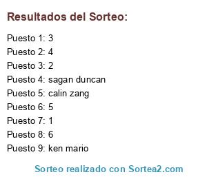 Lista de participantes: ken mario, sagan duncan, calin zang, 1, 2, 3, 4, 5, 6.