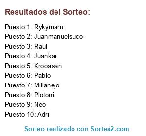 Lista de participantes: Plotoni, Millanejo, Krooasan, Rykymaru, Juanmanuelsuco, Juankar, Adri, Pablo, Raul, Neo.