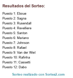 Resultados del sorteo: