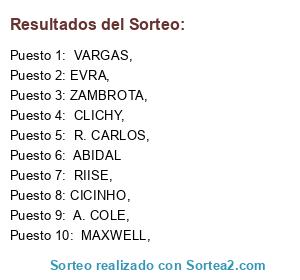 Lista de participantes: EVRA, , ZAMBROTA,, VARGAS,, A. COLE,, CLICHY,, MAXWELL,, R. CARLOS,, RIISE, , CICINHO,, ABIDAL.