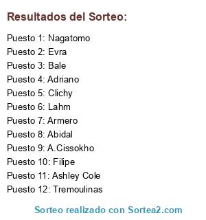 Lista de participantes: Evra, Nagatomo, Clichy, Tremoulinas, Armero, Bale, Ashley Cole, Filipe, Lahm, Adriano, Abidal, A.Cissokho.