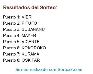 Lista de participantes: BUBANANU, KURAMA, MAYER, VIERI, VICENTE, OSKITAR, PITUFO, KOKOROKO.