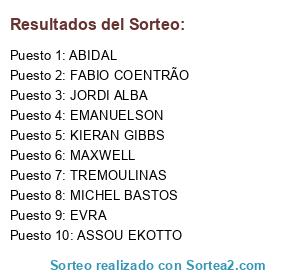 Lista de participantes: 1. FÁBIO COENTRÃO, 2. DOSSENA, 3. ASSOU EKOTTO, 4. BAINES, 5. MARCELO, 6. TIÉNÉ, 7. BEDIMO, 8. EVRA, 9. ABDENNOUR, 10. MAXWELL.