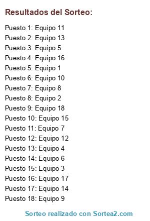 Lista de participantes: Equipo 1, Equipo 2, Equipo 3, Equipo 4, Equipo 5, Equipo 6, Equipo 7, Equipo 8, Equipo 9, Equipo 10, Equipo 11, Equipo 12, Equipo 13, Equipo 14, Equipo 15, Equipo 16, Equipo 17, Equipo 18.