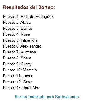 Lista de participantes: Marcelo, Jordi Alba, Filipe luis, Alex sandro, Baines, Rose, Kurzawa, Shaw, Clichy, Gaya, Layun, Alaba, Ricardo Rodriguez.