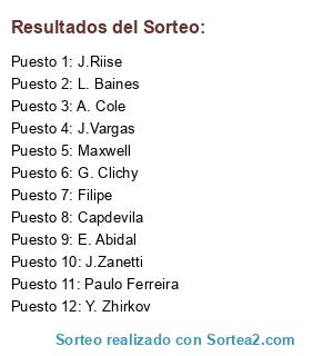 Lista de participantes: Paulo Ferreira, J.Zanetti, A. Cole, Y. Zhirkov, E. Abidal, L. Baines, Filipe, Capdevila, Maxwell, G. Clichy, J.Riise, J.Vargas.